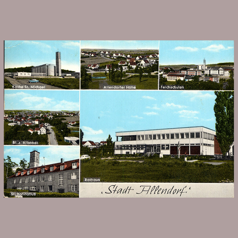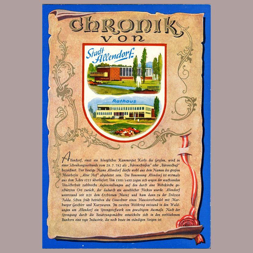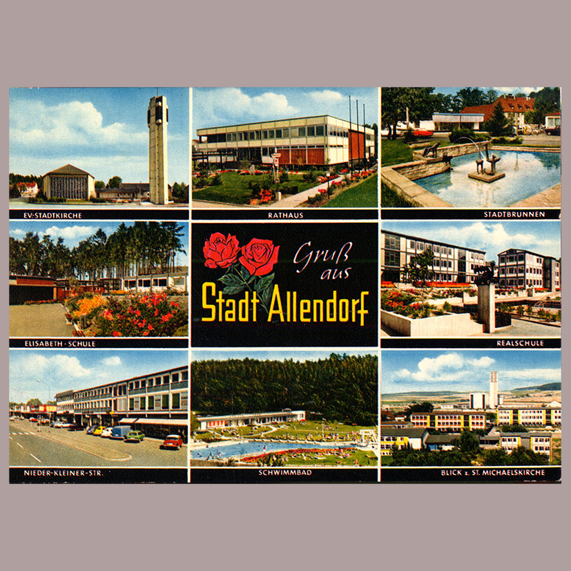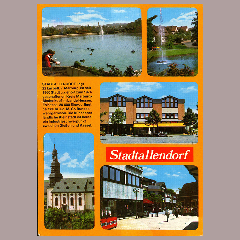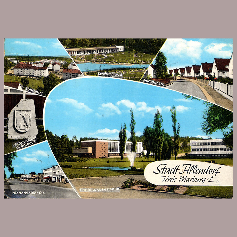 Bildpostkarten einer Stadt sind Stadtbilder im doppelten Sinn. Als Verdichtung markanter Sehenswürdigkeiten richten diese immer wieder anziehenden Objekte der Massenkultur den Blick der Bewohner, seiner Gäste und der Welt auf das, was seinerzeit als "sehens-würdig" galt. Das Fotobild dokumentiert immer auch das Bild in den Köpfen. Der Wandel Stadtallendorfs als fotografische Imagination in Gestalt von Bildpostkarten verrät etwas über die verschiedenen wechselnden "Images" von Stadtallendorf. - Ein Katalog in Zusammenarbeit mit Herbert Köller.