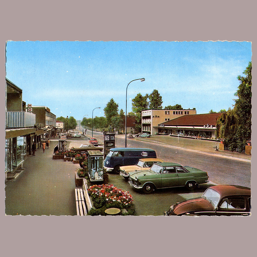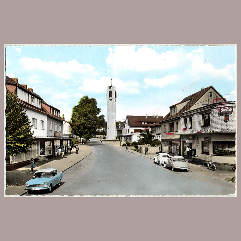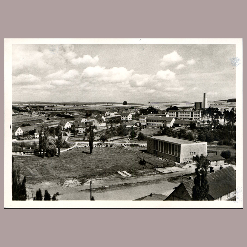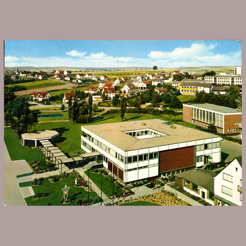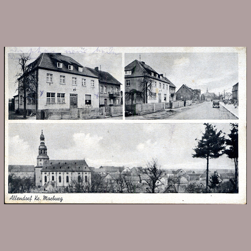 Bildpostkarte von Stadtallendorf, Buchhandlung Schubert&Schwarz, Fotograf ungenannt, Anfang 1960er Jahre.